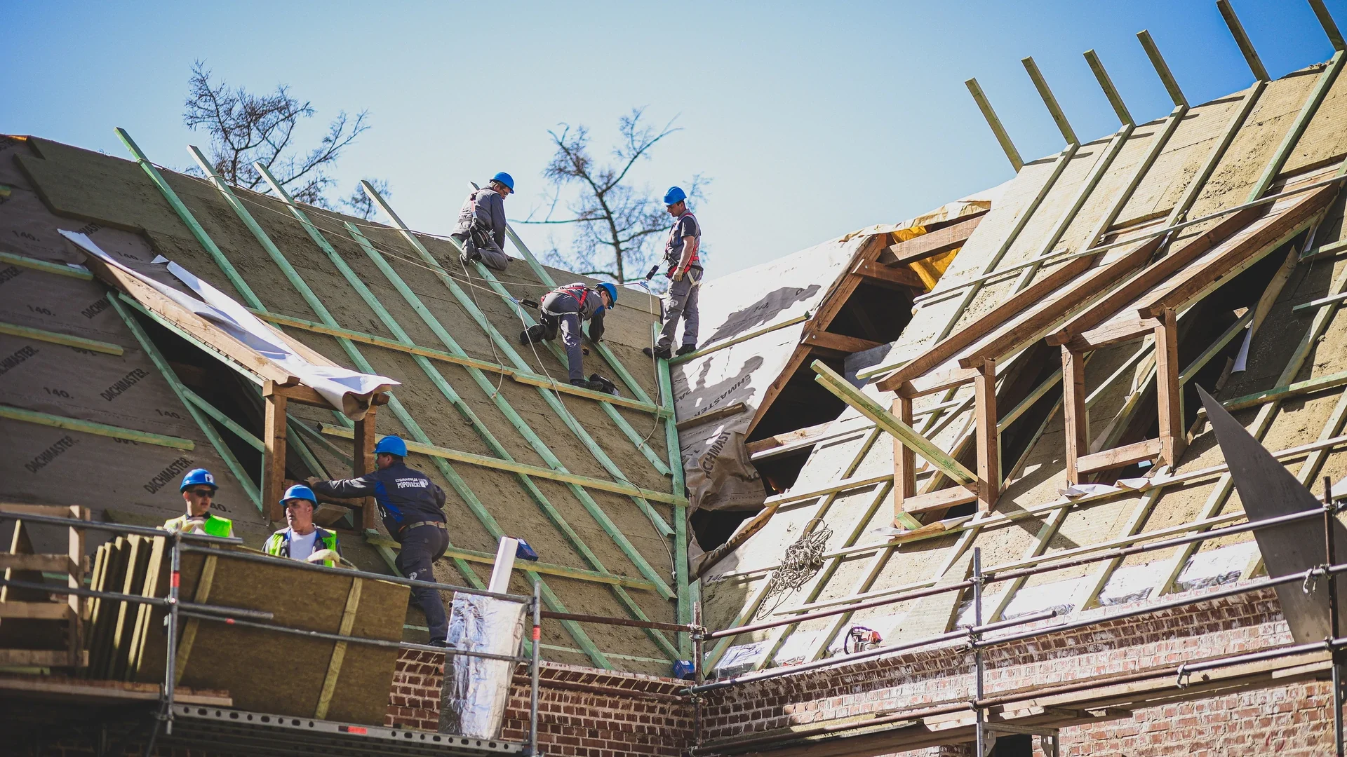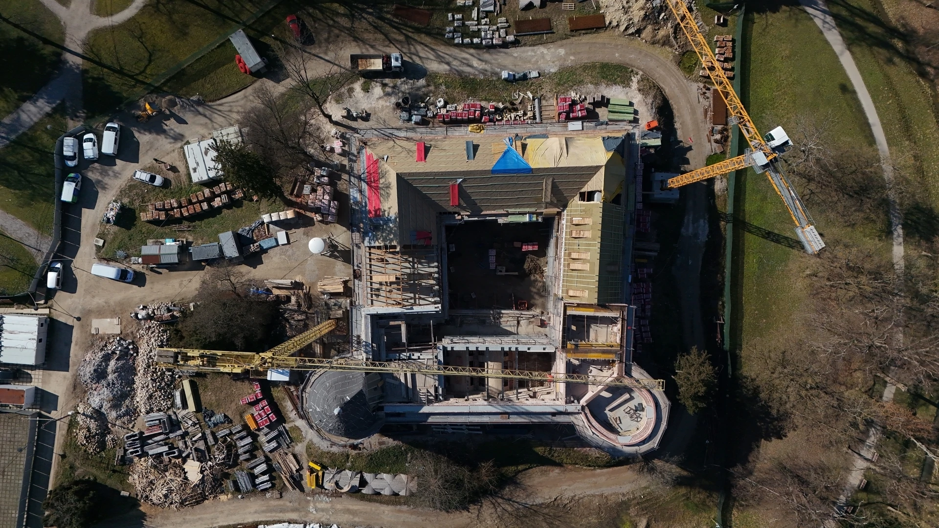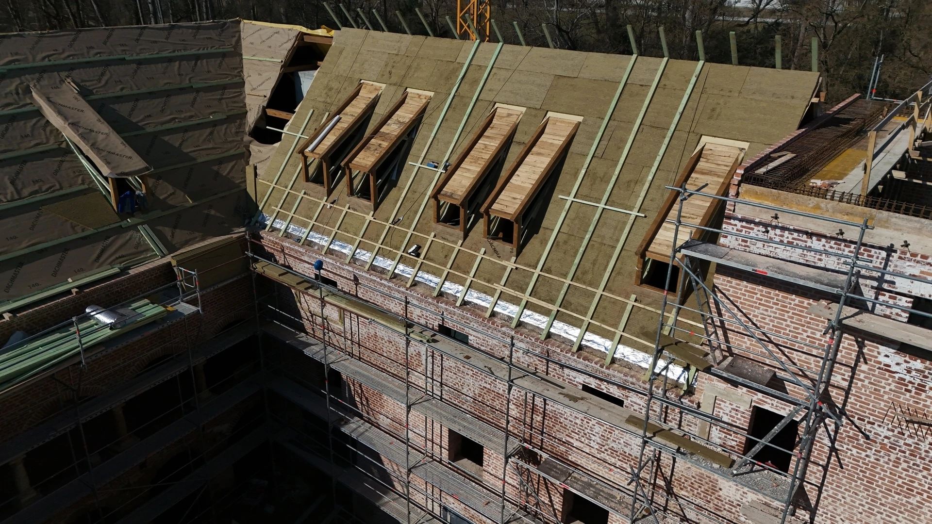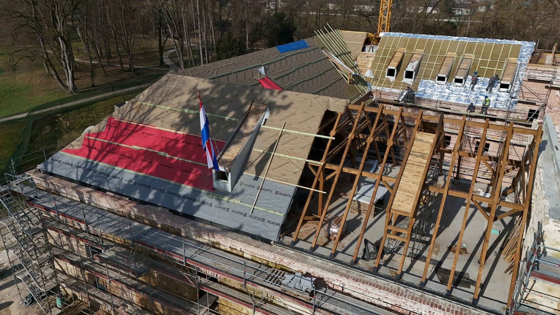 Polaganje krova u narodu simbolizira ulazak u završnu fazu grubih građevinskih radova i predstavlja ključan korak u obnovi objekta.
