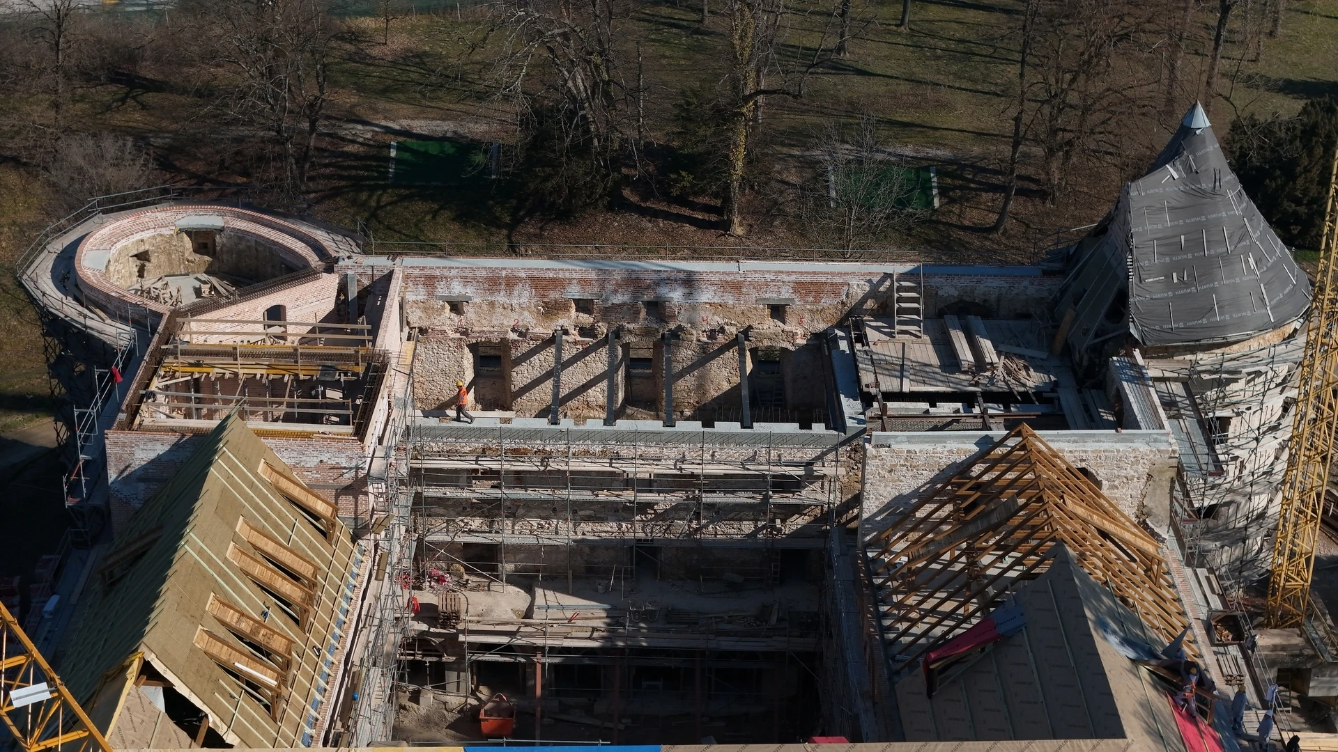 No, krov nije jedini segment na kojem se intenzivno radi – gradilište vrvi aktivnostima na različitim dijelovima objekta. Svakodnevno je na terenu angažirano više od 60 radnika koji, uz preciznu obnovu arhitektonskih elemenata, provode i složene građevinske zahvate na statičkom ojačavanju konstrukcije. Ove mjere dodatno će povećati otpornost i sigurnost dvorca, osiguravajući njegovu dugoročnu stabilnost i trajnost.